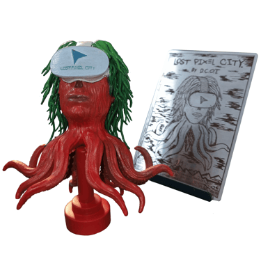 Physical collectible, designed by DCOT, 3D model produced by Mirdraft3d. Printed in resin and hand-painted by DCOT. Includes certificate of authenticity. 17 unique pieces. Comes with its box, base, and engraved bronze plaque OG certificate. MINT OPEN