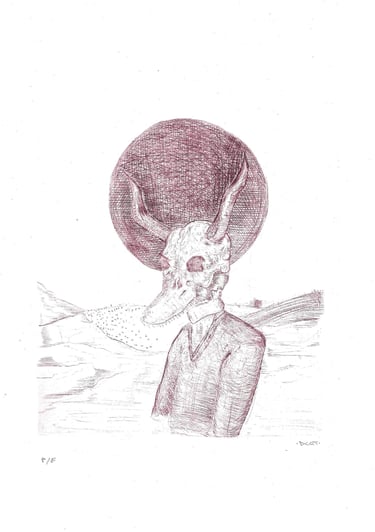 1/1 monotipe, ink at cotton paper is a graphic line is a search for stains and shapes to construct imaginary worlds that represent impossible figures as if they were sculptures or debris from the landscapes depicted in the image by DCOT.