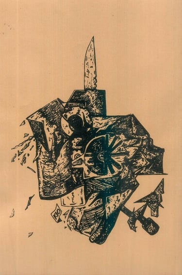 Period of experimentation and creative searches around collage and painting that developed skill and interest in the creation of collage pieces, ink drawing, acrylics, watercolors and silkscreen.