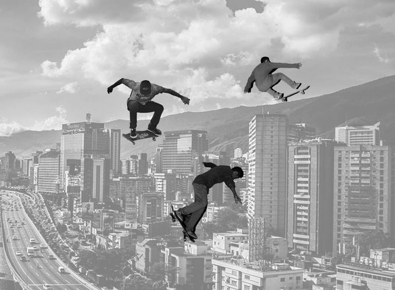 A collage and experimental photography series. Images of urban routes merge and leave their mark in a beam of icy light. DCOT 2018 republished as NFTs in 2021. Bogotá, Colombia