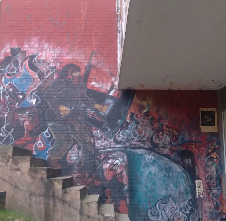 Painting on a wall, ERASED or COVERED, became iconic, painted in a public university where this image represents an everyday scene where the struggle of power clashes with the desire to shout discontent in a common scene that has been romanticized in Colombia's public universities, encouraging freedom of expression. 2017