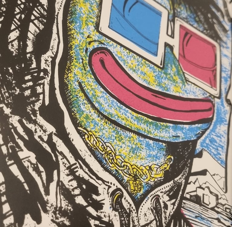 Only 42/42 Abduction pepe PRINTS are on black uncommon, 3d palindrome, and block9 satoshis live for 0,00025 BTC