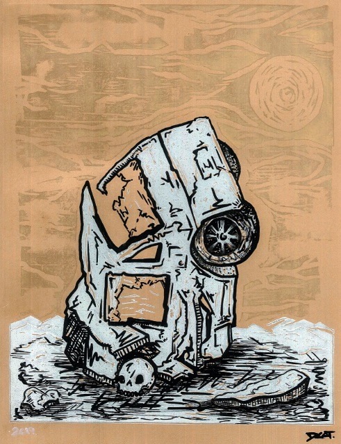Accident Reduction linocut 1/1 by DCOT